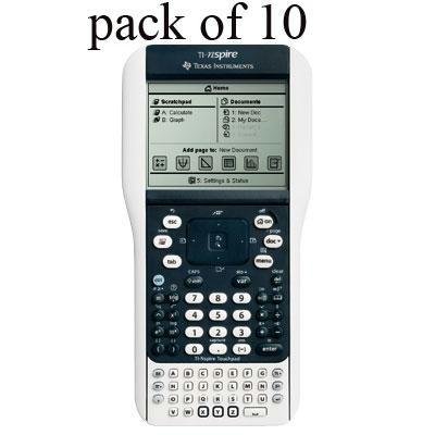 TI-Nspire EZ Spot Yellow Handheld with Touchpad Teacher Kit in cardboard box containing (10) TI Nspire EZ Spot Handheld with Touchpad (40) AAA batteries (10) Impact-resistant slide cases (1) manual & (10) quick reference cards (5) unit-to-unit USB cables & (10) unit-to-puter USB cables Resource brochure TI-Nspire Teacher Software (90 day trial).B003EF5W2OASIN